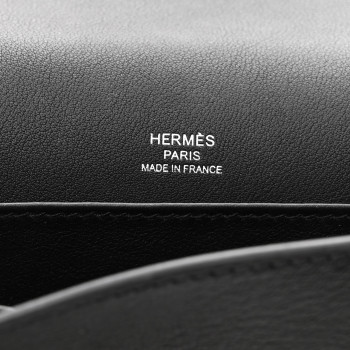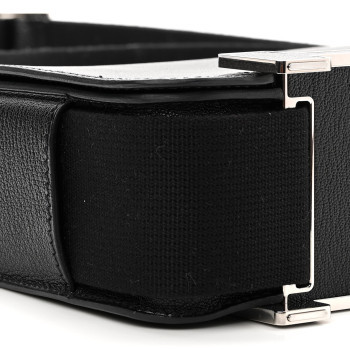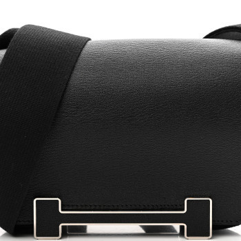 This is an authentic HERMES Chevre Mysore Geta in Black. This is a small messenger style bag that is finely crafted of luxurious goatskin leather in black. This symmetrical bag fastens with a magnetic closure. The clasp forms a pedestal that replaces the base studs. The flap opens to a matching leather interior with patch pockets.