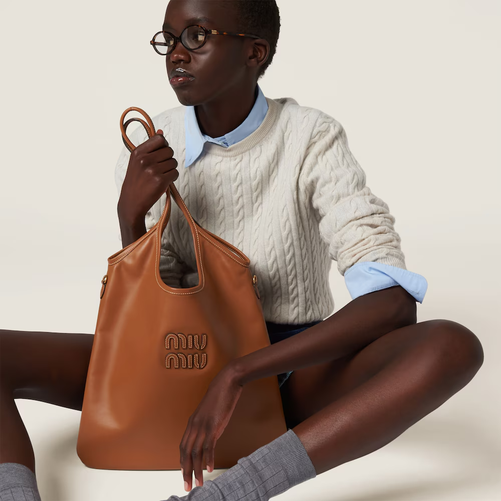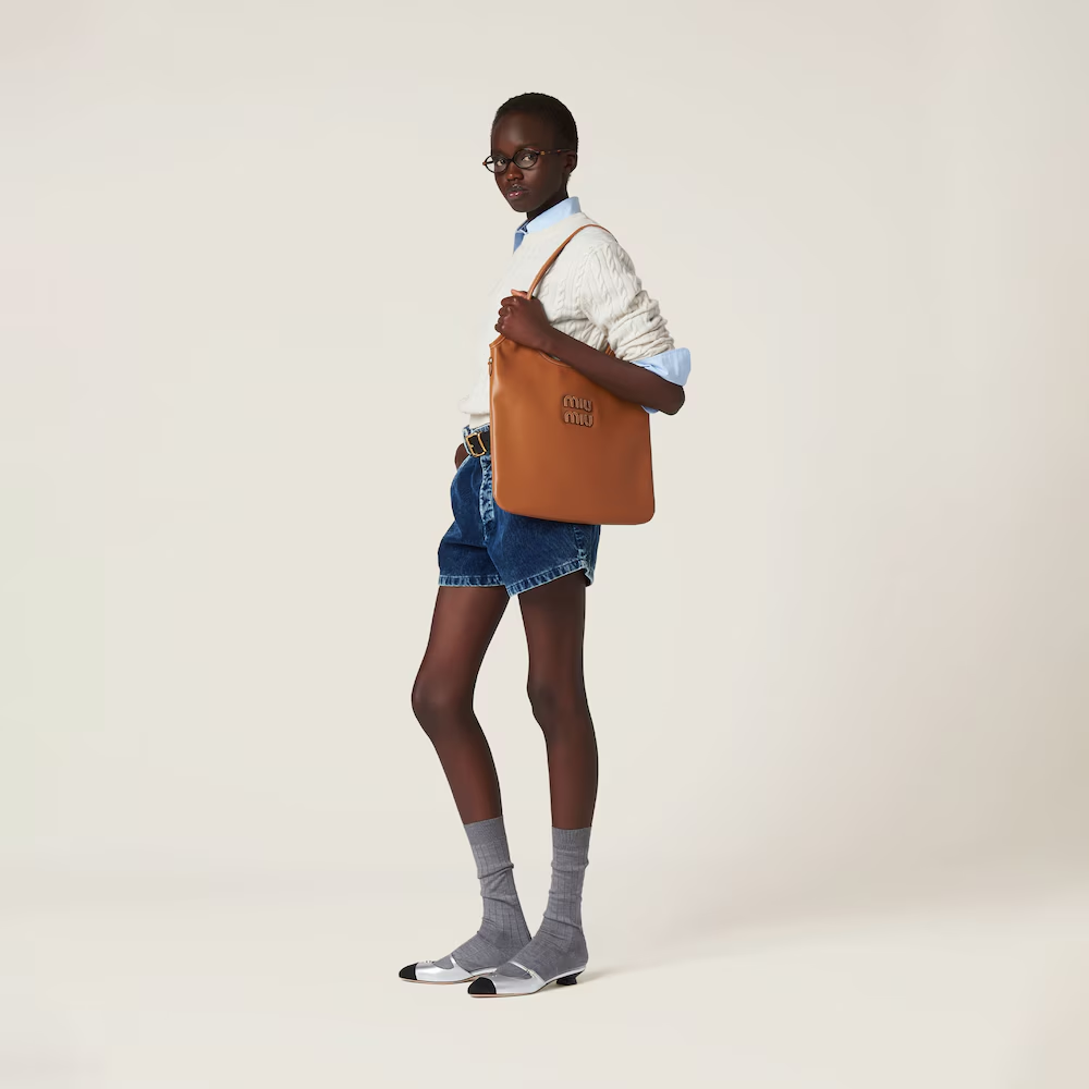 In this IVY leather bag, a classic style is enhanced with metal details and the Miu Miu lettering logo that gives the design an iconic and immediately recognizable note.