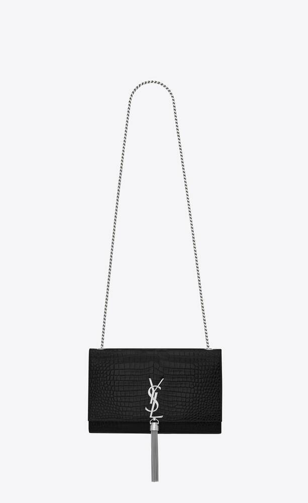KATE MEDIUM CHAIN BAG WITH TASSEL IN EMBOSSED CROCODILE SHINY LEATHER