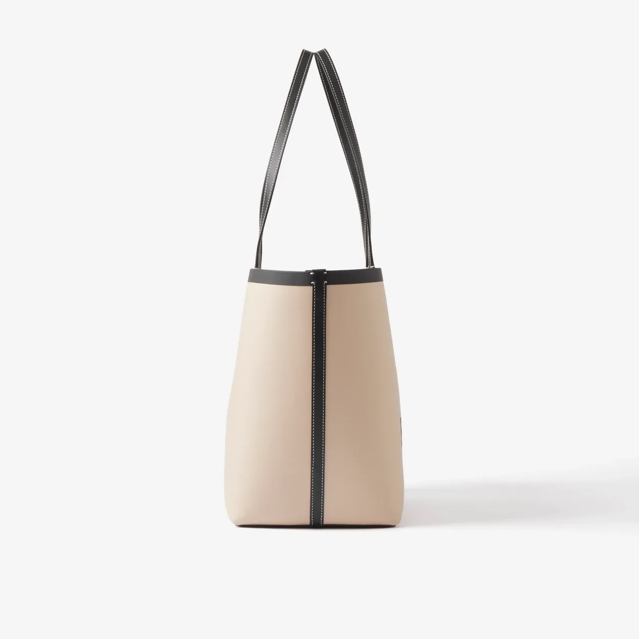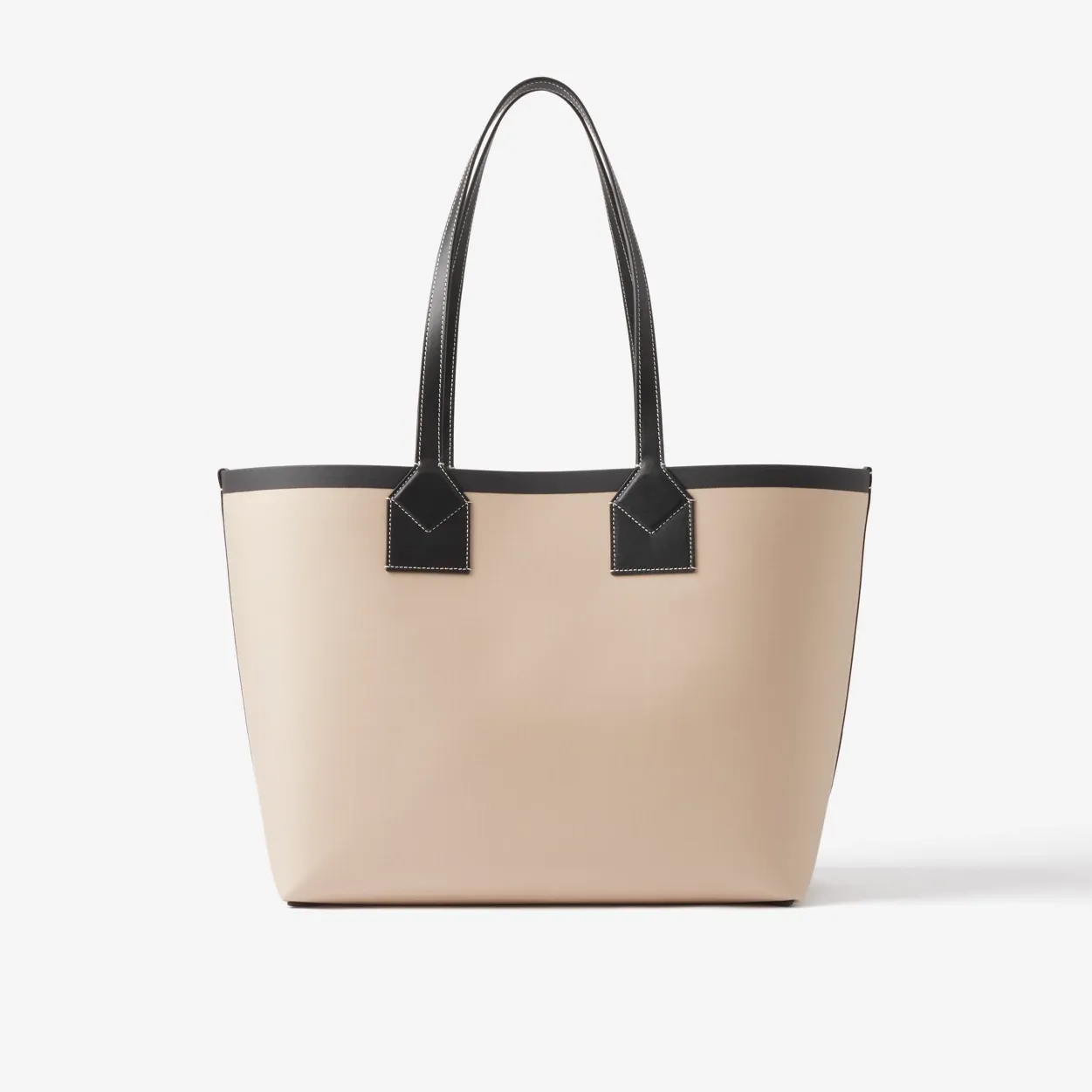 A spacious tote bag in cotton trimmed with topstitched leather, highlighted with our label print – an ode to the brand's history of discovery, featuring an excerpt from Thomas Burberry's 'Open Spaces’ book. The design is lined in our Burberry Check and styled with a detachable zip pouch.