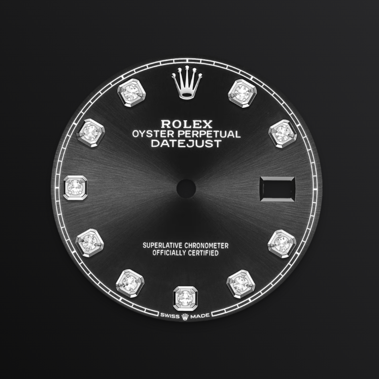 Many of the dial styles in the Oyster collection feature sunray effects that reflect an elegant sheen. This effect requires excellent brushing techniques to create engravings that expand from the center of the dial outwards.