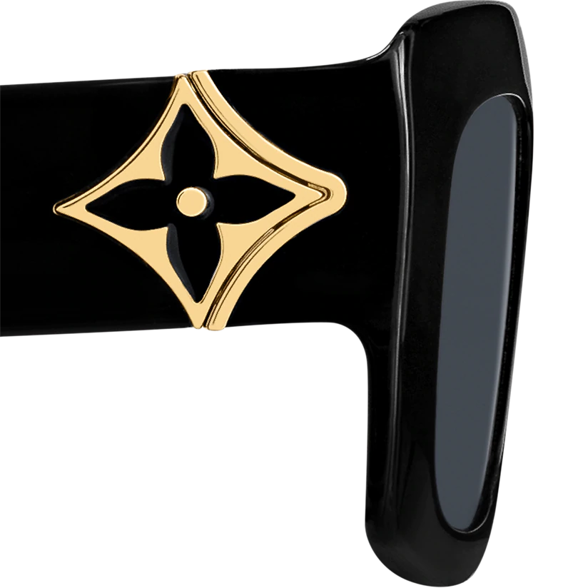 A bold rectangular shape is showcased in the enigmatic LV Flower sunglasses, part of an exciting collaboration with Japanese artist Nigo. On the lenses and inside the temples, Nigo's fresh take on the Louis Vuitton signature nods to the capsule's retro influences. Monogram Flowers embellish the hinges, lending a chic twist to this must-have pair.