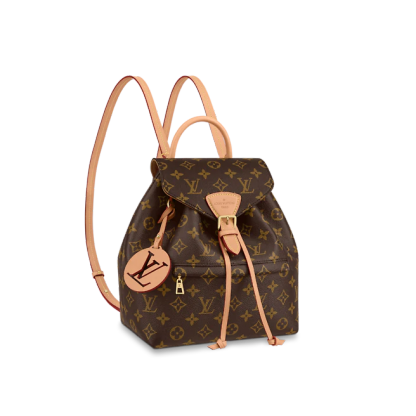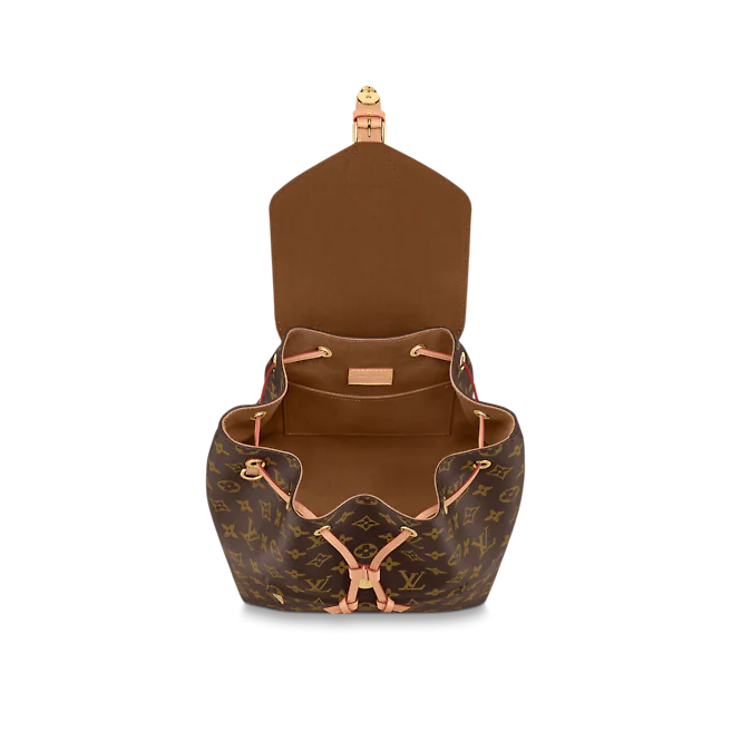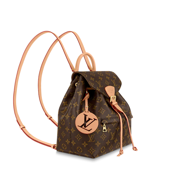 The Montsouris PM is an elegant new backpack made from Monogram canvas and cowhide leather, it closes with a archive Louis Vuitton buckle and leather drawstrings. Practical, with a roomy interior, it features an outside zipped pocket. The top handle and adjustable leather straps allow multiple carry options