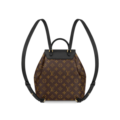 The Montsouris PM is an elegant new backpack made from Monogram canvas and cowhide leather, it closes with a archive Louis Vuitton buckle and leather drawstrings. Practical, with a roomy interior, it features an outside zipped pocket. The top handle and adjustable leather straps allow multiple carry options
