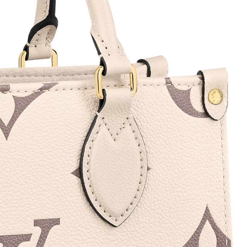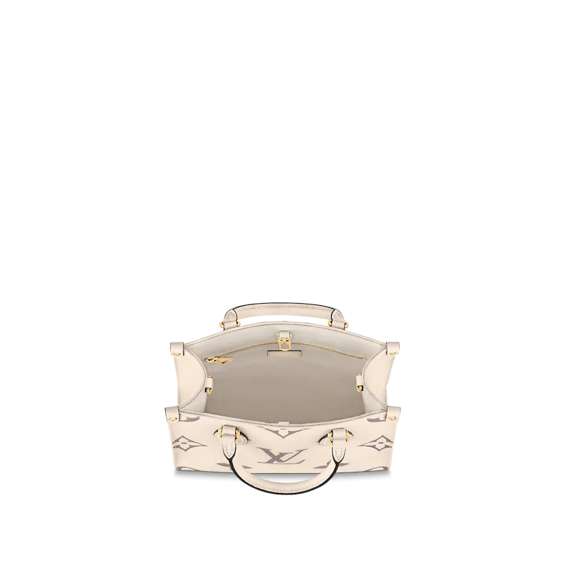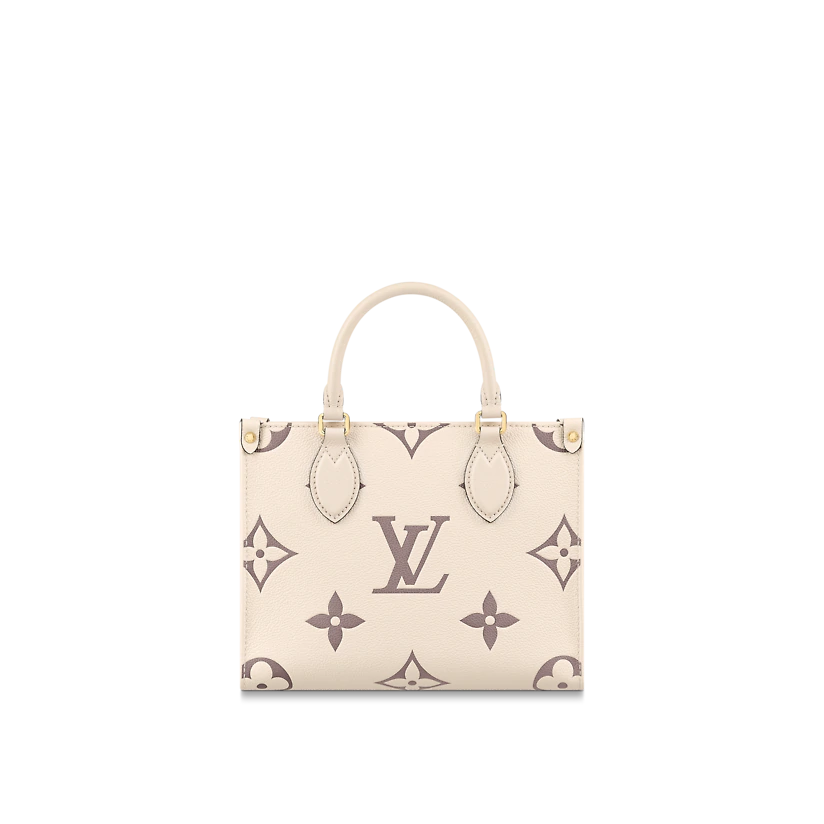 Inspired by Louis Vuitton’s famous Sac Plat from 1968, the OnTheGo PM tote is fashioned in Monogram Empreinte leather, embossed with a Medium Bicolor Monogram pattern. This smaller version of the original OnTheGo fits essentials such as an iPad Mini. Articulated top handles and an adjustable removable strap offer a variety of carry options.