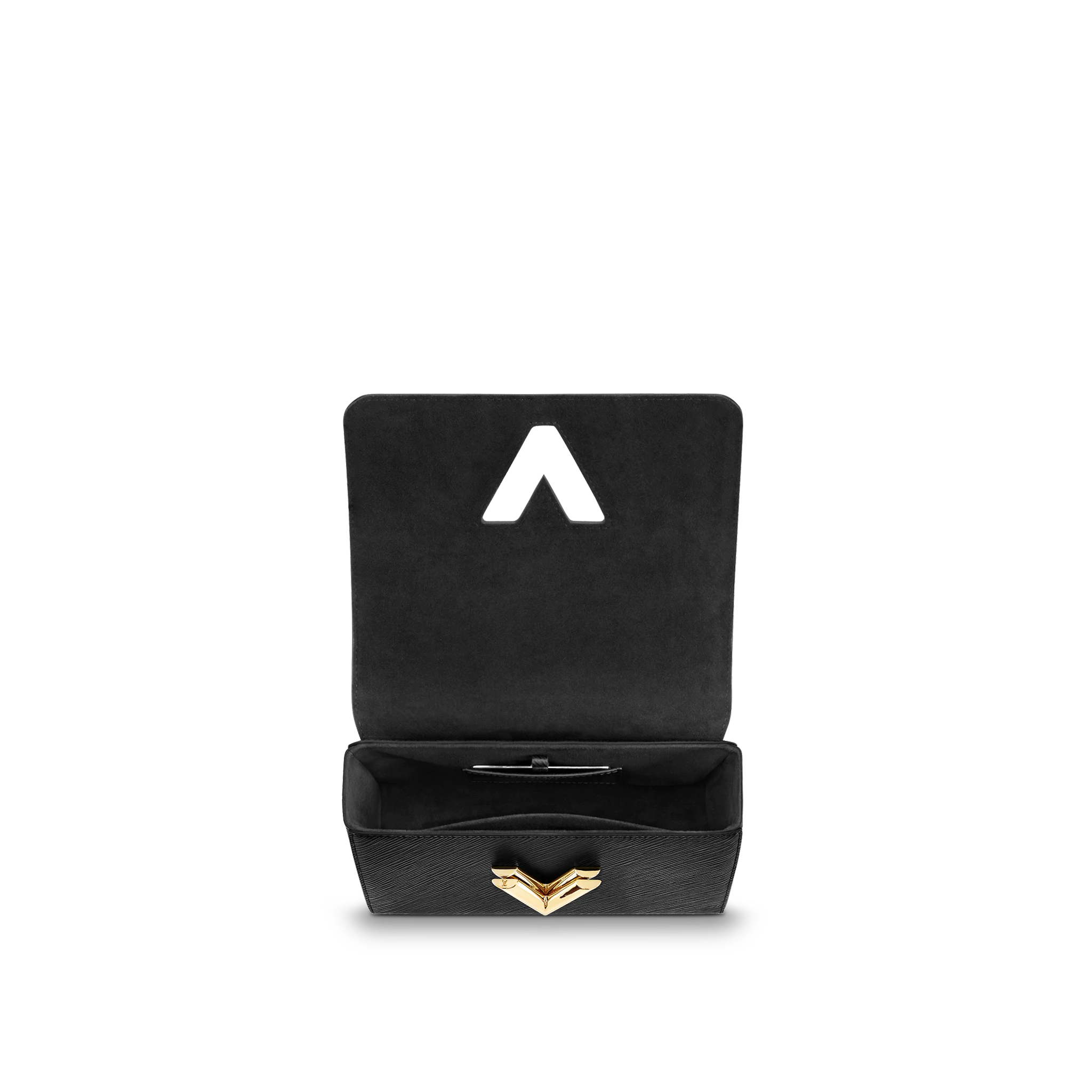 Crafted from the House’s emblematic Epi leather, the Twist MM chain bag features the now-iconic LV Twist lock, a sculptural signature in gleaming golden metal. Unexpectedly roomy thanks to the cleverly designed “wave” base, this beautifully made bag is a fashionable day-to-evening companion. The sliding chain strap can be doubled for shoulder carry or lengthened for cross-body wear. A New Classic of the House, the Twist bag was introduced at the 2015 Cruise show.