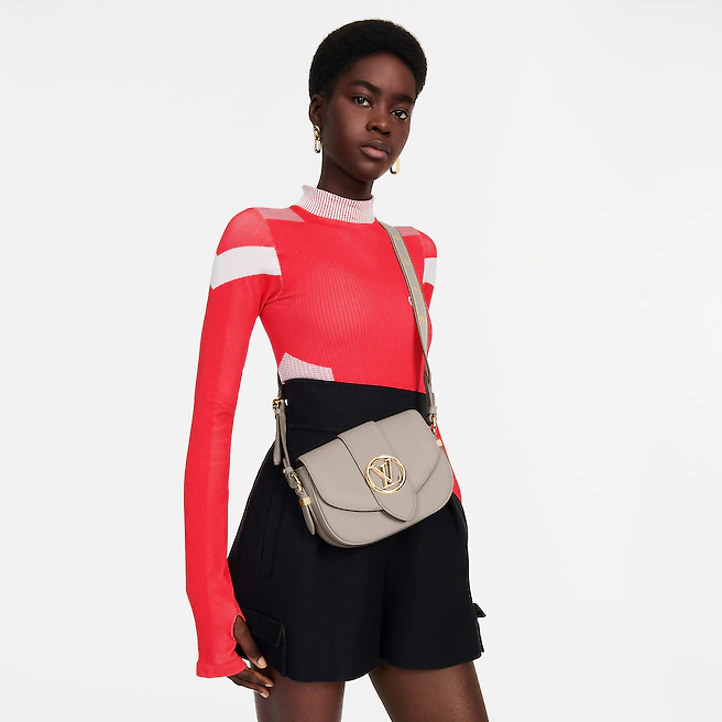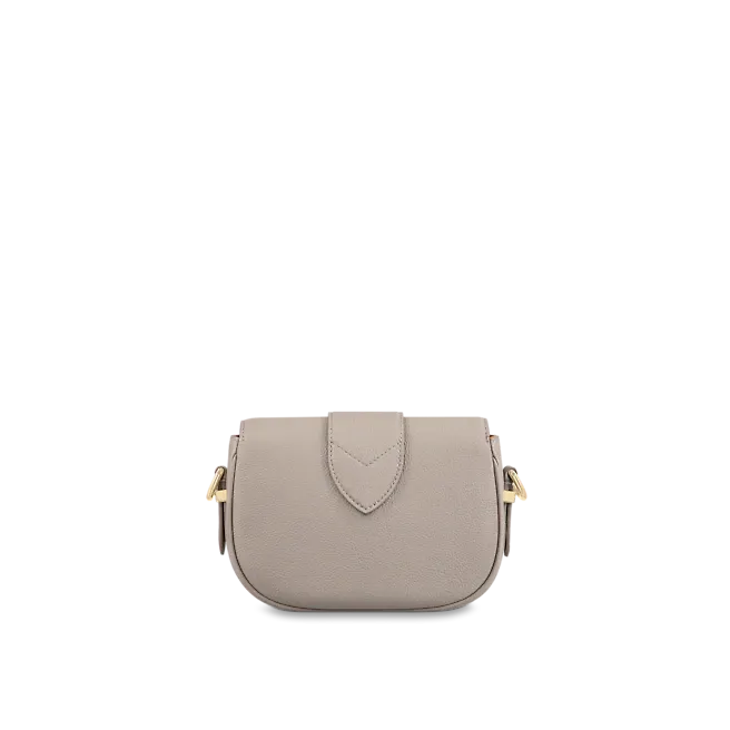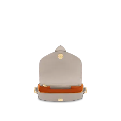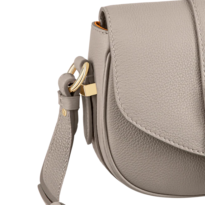- Grained calfskin and embroidered textile trim