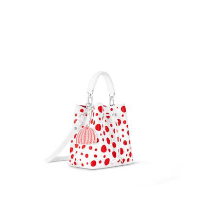 The LVxYK Neonoé BB emanates upbeat creative energy as part of the "Infinity Dots" theme of the Louis Vuitton x Yayoi Kusama collection. White Epi cowhide is printed with dozens of vivid red dots, echoing the endless dotted patterns that the celebrated Japanese artist uses in her paintings, sculptures, and installations. And it comes with a clever detail: a charm shaped like a pumpkin, another of Kusama's visual emblems.