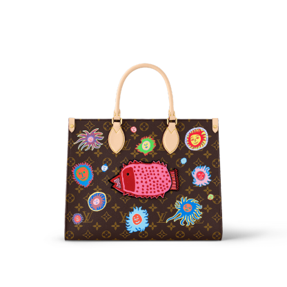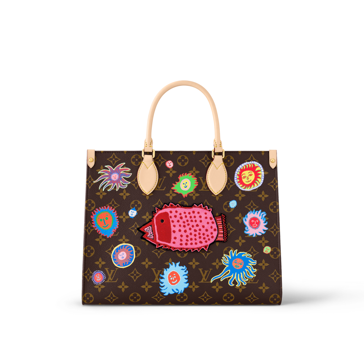 The "Faces" theme of the exclusive Louis Vuitton x Yayoi Kusama collection gives the LVxYK OnTheGo MM a burst of colorful energy. Monogram canvas is printed and embroidered with joyful images reproduced from "My Eternal Soul," a series of paintings that the renowned Japanese artist began in 2009. A spacious, practical bag becomes a celebration of free-spirited creative vision and expert craftsmanship.