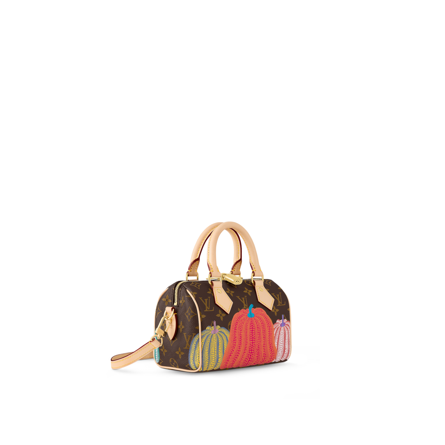 For the "Pumpkins" theme of the new Louis Vuitton x Yayoi Kusama collection, this version of the LVxYK Speedy Bandoulière 20 comes with an exclusive eye-catching print on Monogram canvas. The House's signature material is adorned with psychedelic stylized pumpkins, echoing a recurring theme in the renowned Japanese artist's work. A compact, easy-to-carry bag becomes an artistic expression.