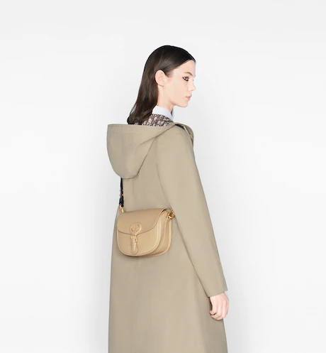 The Dior Bobby bag is a hobo style showcasing sophisticated lines and harmonious proportions. The silhouette is crafted from latte box calfskin with a suede calfskin interior for added suppleness, and is enhanced by antique gold-finish metal hardware. Its removable and adjustable shoulder strap has a military-inspired buckle, and allows the medium bag to be carried by hand, worn over the shoulder or crossbody.