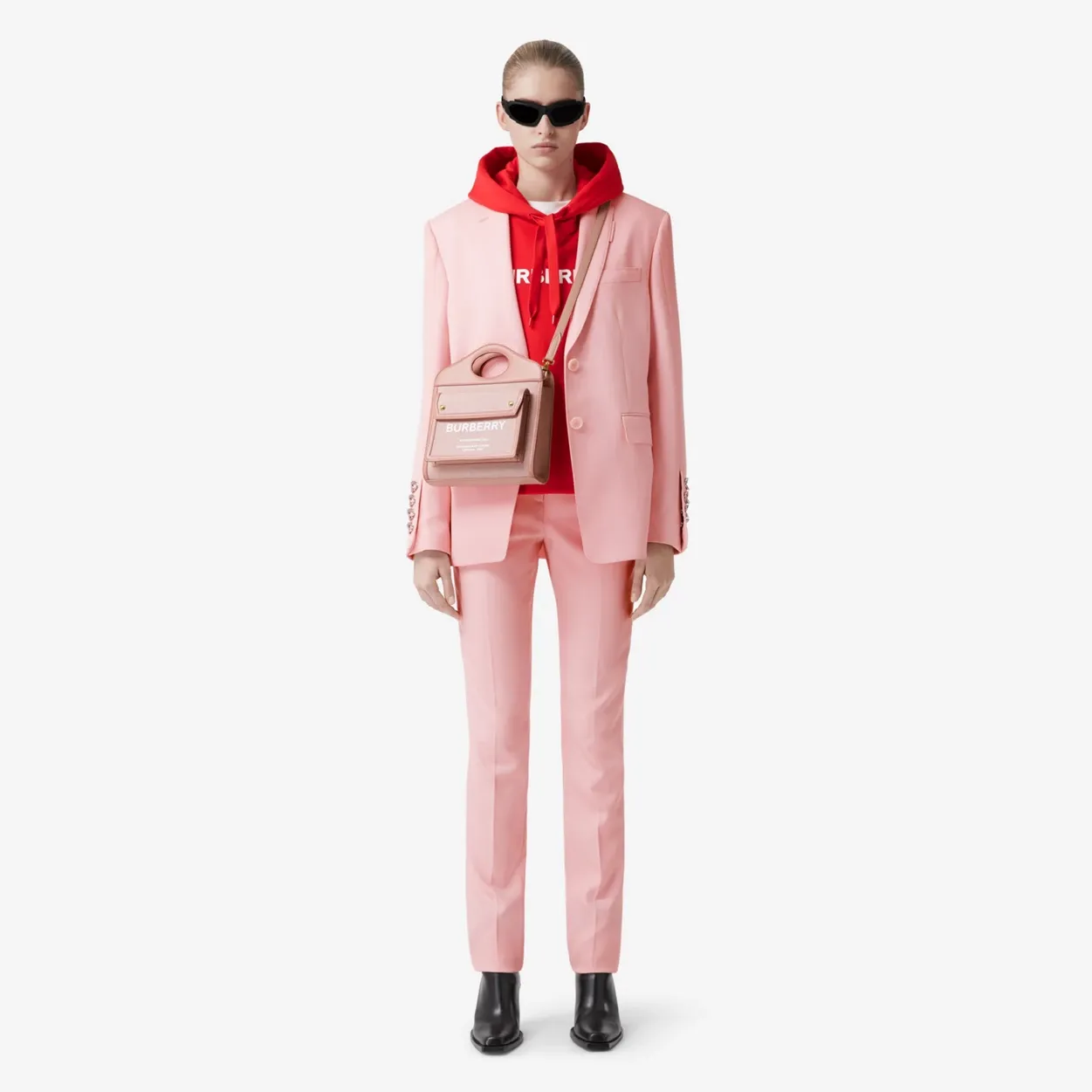 An archive-inspired tote in cotton canvas and topstitched leather, featuring a front pocket stamped with our Horseferry print. Carry by the reinforced top handles or detachable shoulder strap.