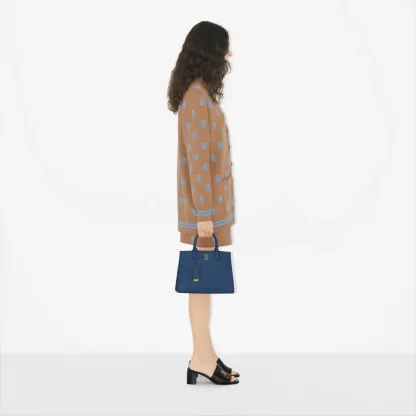 A simple, structured tote in grainy leather, punctuated with the Thomas Burberry Monogram.