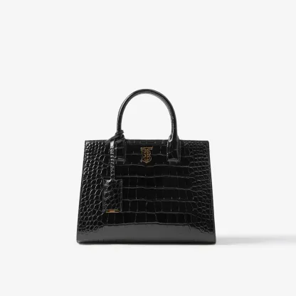 • A simple, structured tote in crocodile-effect leather, punctuated with the Thomas Burberry Monogram.