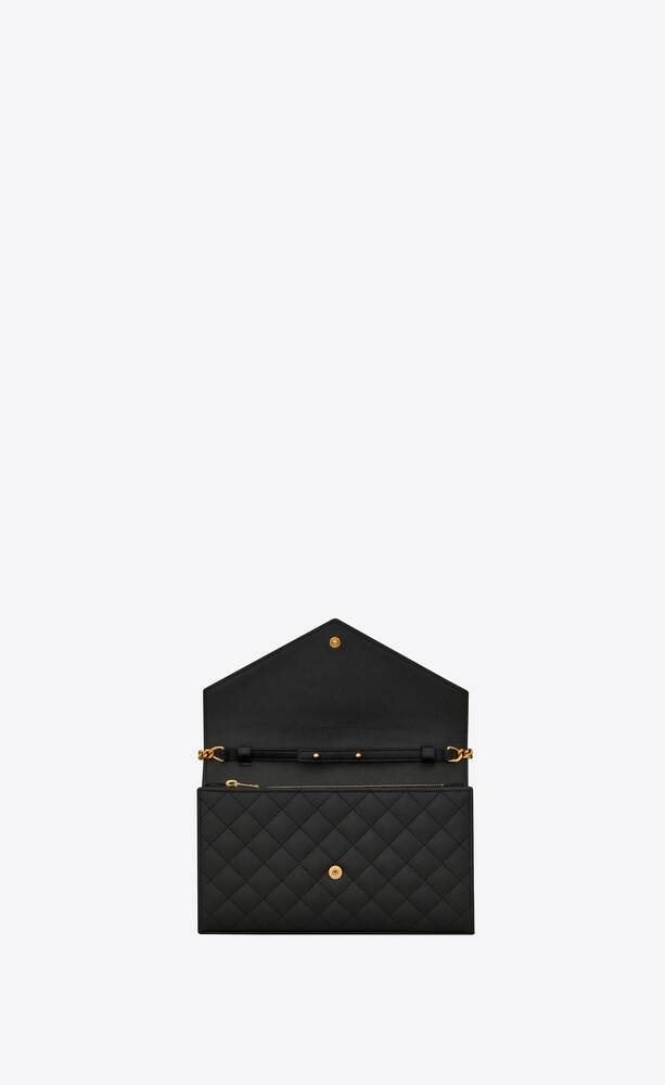 CHAIN WALLET WITH A FRONT FLAP MADE WITH METAL-FREE TANNED LEATHER, DECORATED WITH METAL YSL INITIALS AND A MIX OF VERTICAL, CHEVRON AND DIAMOND QUILTED OVERSTITCHING, FEATURING A DETACHABLE CHAIN STRAP.
