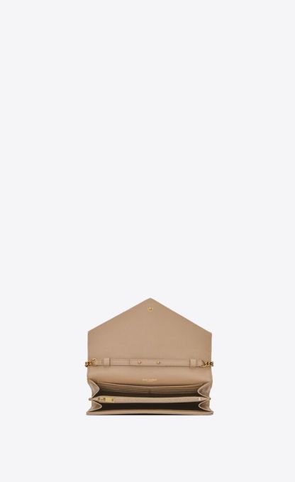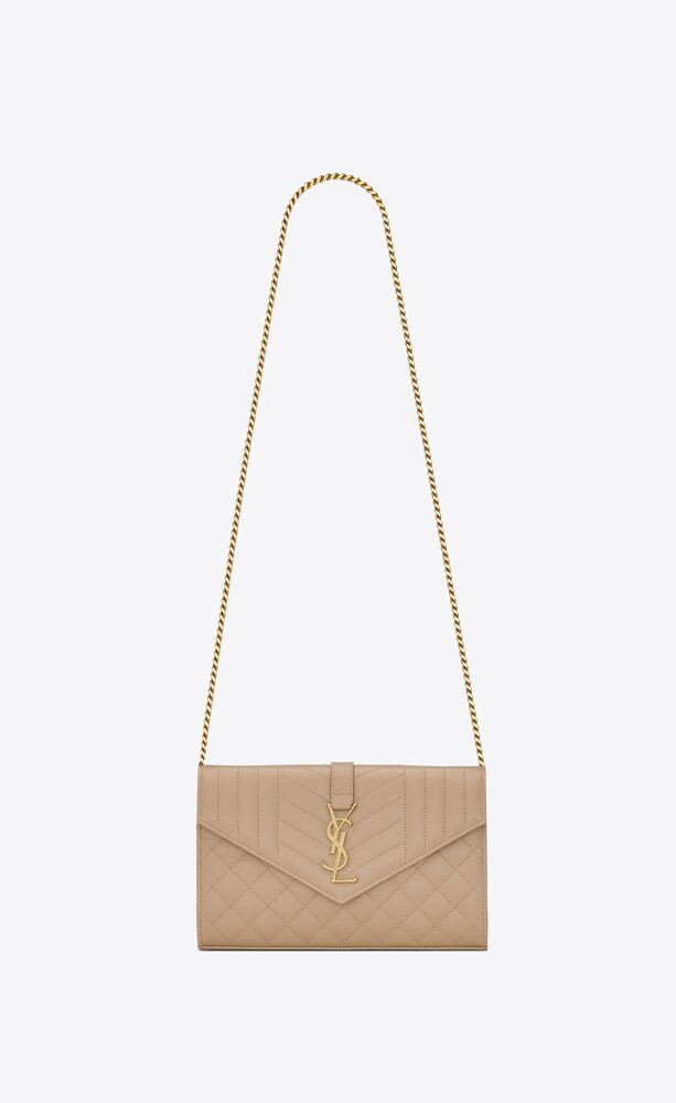 CHAIN WALLET WITH A FRONT FLAP MADE WITH METAL-FREE TANNED LEATHER, DECORATED WITH METAL YSL INITIALS AND A MIX OF VERTICAL, CHEVRON AND DIAMOND QUILTED OVERSTITCHING, FEATURING A DETACHABLE CHAIN STRAP.