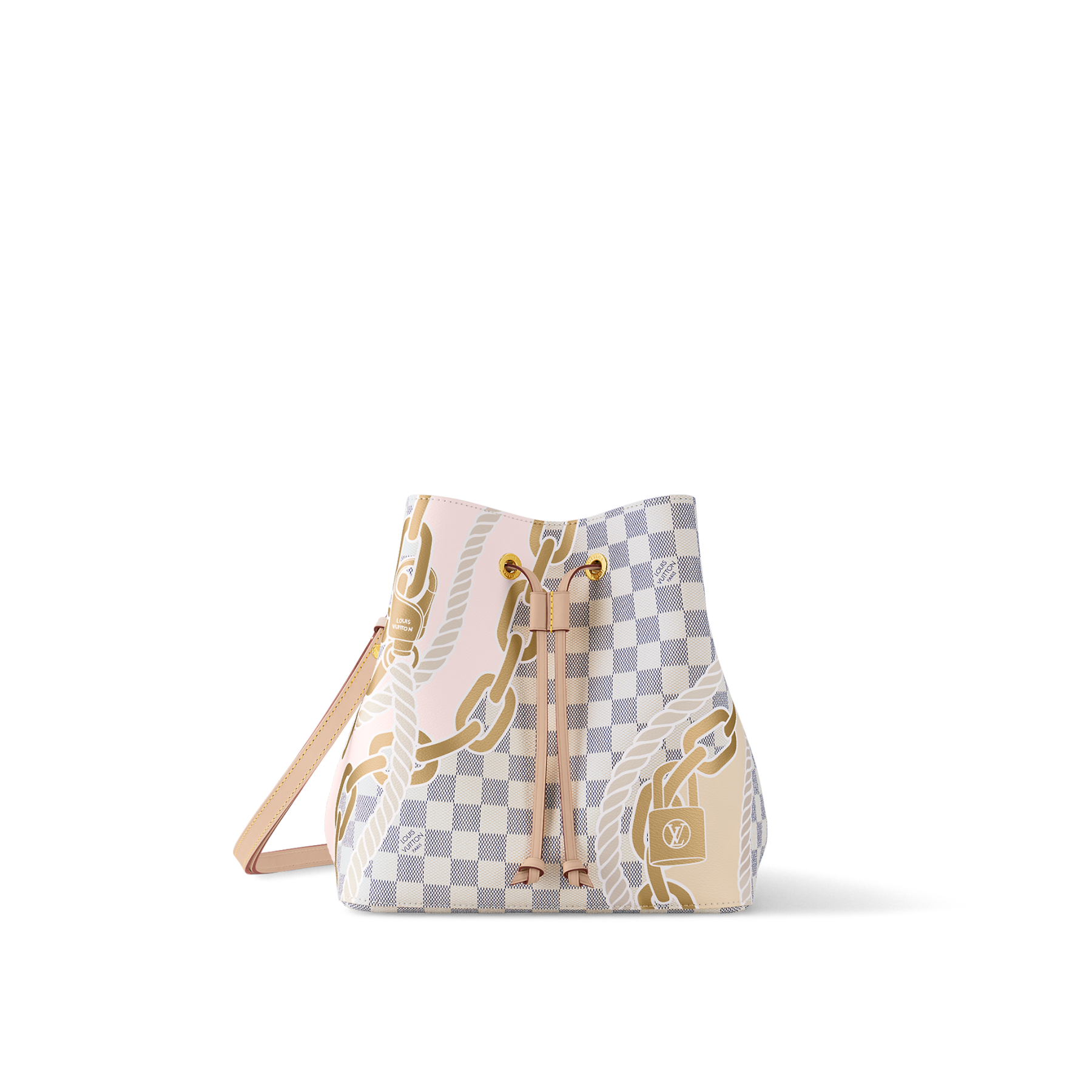 The body-friendly NéoNoé MM bucket bag takes on a summery feel in Damier Azur canvas, livened up with a bold yet feminine nautical print of ropes and chains. The bag's strap can be adjusted for long- and short-shoulder carry as well as cross-body wear. The inside zipped pocket keeps belongings secure.