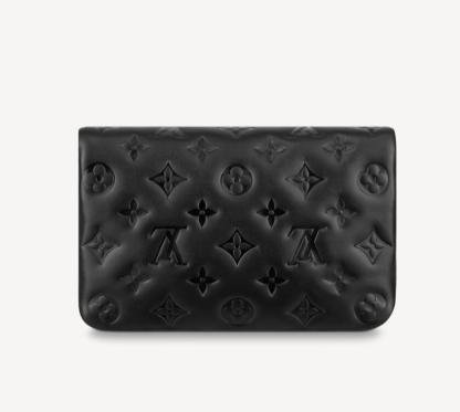 The Pochette Coussin is crafted from soft lambskin, which is embossed with the Monogram pattern to create a puffy, cushiony effect. This is further enhanced by the construction of the pouch, which gives it a supple, body-friendly shape. The removable chain, decorated with a Louis Vuitton charm, offers different carry options: clutch, shoulder or belt.