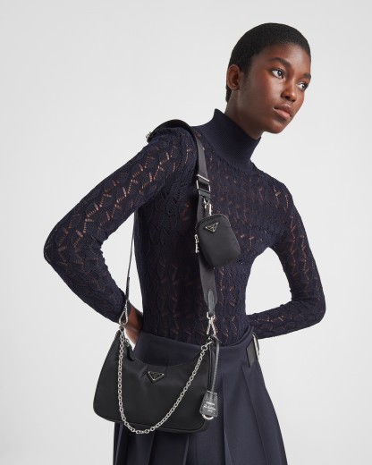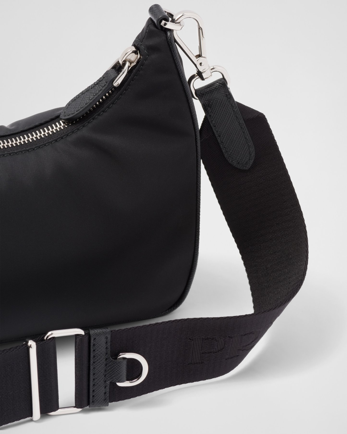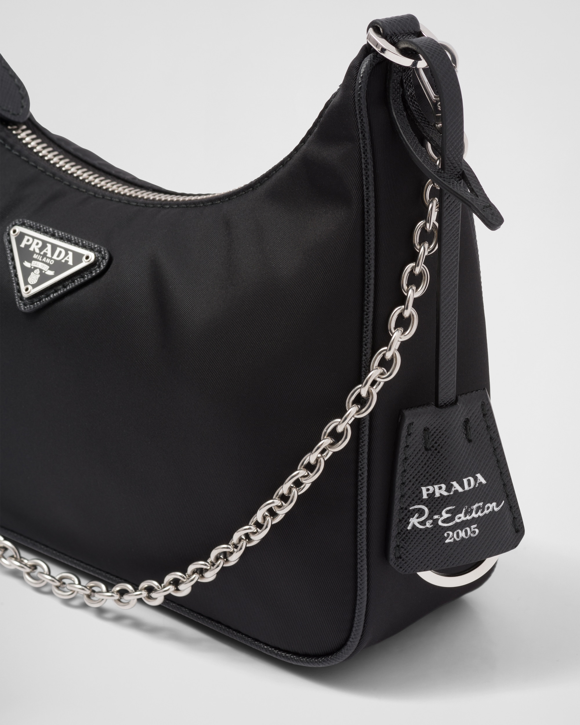 Inspired by the iconic mini hobo bag, the Prada Re-Edition 2005 shoulder bag is made of Re-Nylon: a regenerated nylon yarn (ECONYL®)produced from recycled, purified plastic trash collected in the ocean, fishing nets and textile waste fibers. This versatile bag with Saffiano leather trim comes with a detachable pouch attached to the shoulder strap.