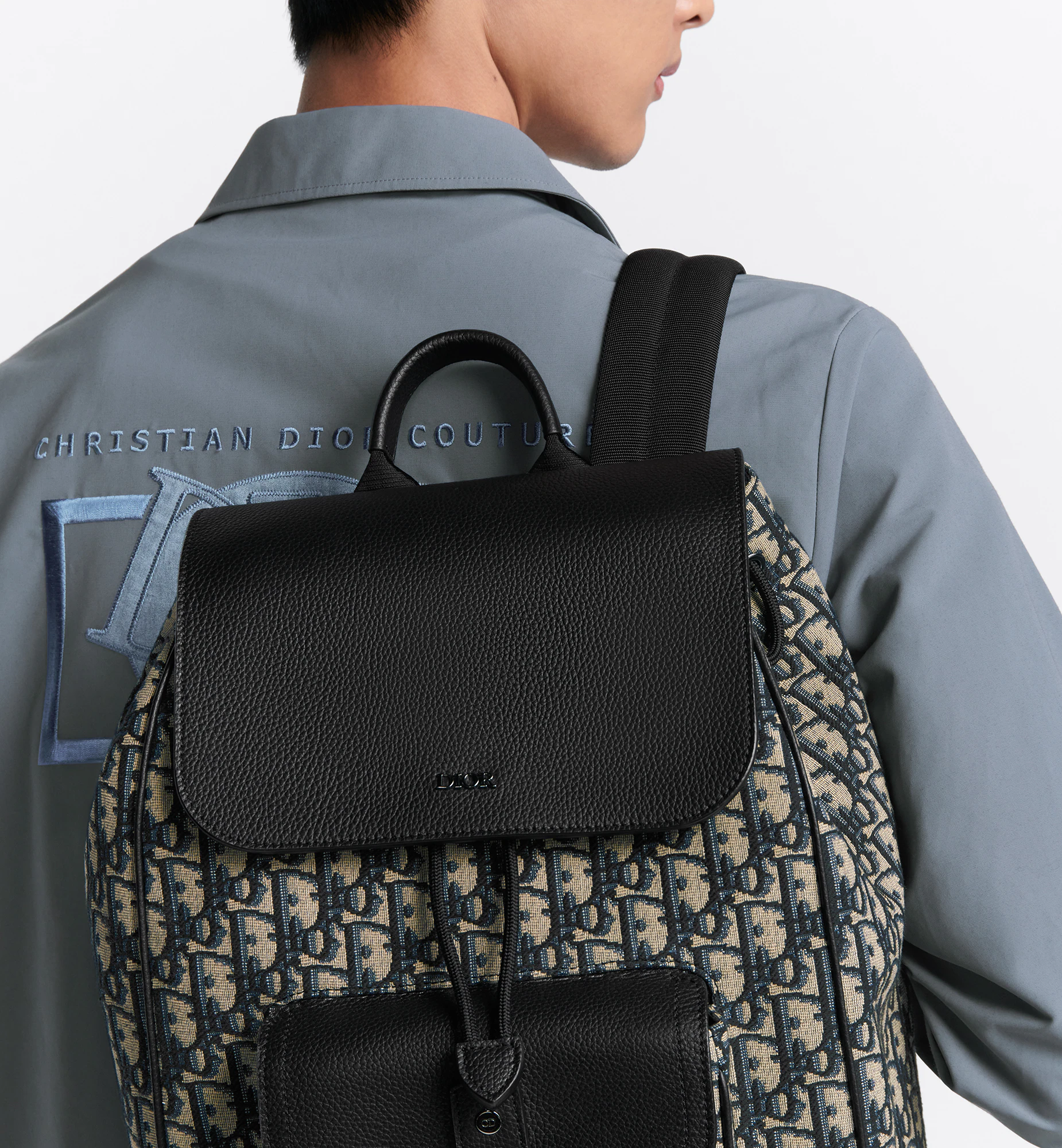 New for Fall 2024, the Saddle backpack offers a modern and original take on the Saddle design. Constructed in beige and black Dior Oblique jacquard, it is embellished with black grained calfskin details and a Dior signature on the front. The spacious design has a compartment to hold all the essentials, while the Saddle flap pocket and aluminum buckle on the front provide easy access to a wallet, keys, headphones or phone. The practical backpack will lend the finishing touch to any outfit.