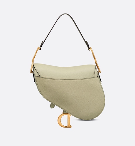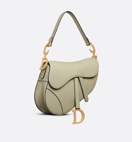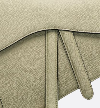 Maria Grazia Chiuri brings a fresh update to the iconic Saddle bag. Crafted in sage green grained calfskin, the legendary design features a Saddle flap with a magnetic D stirrup clasp, as well as an antique gold-finish metal CD signature on either side of the strap. Featuring a thin, adjustable and removable shoulder strap, the Saddle bag may be carried by hand, worn over the shoulder or crossbody.