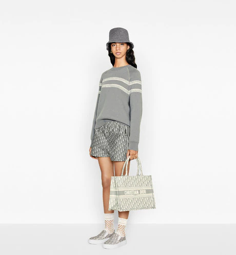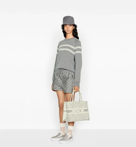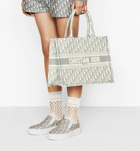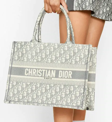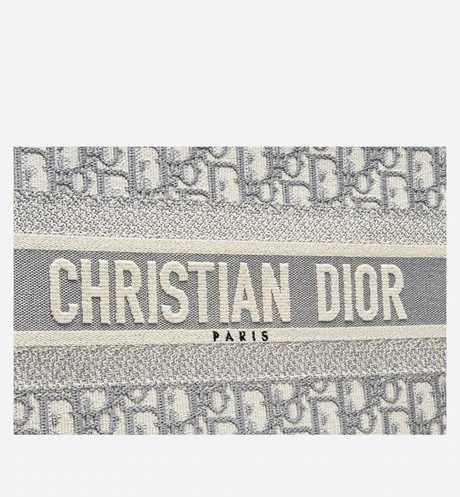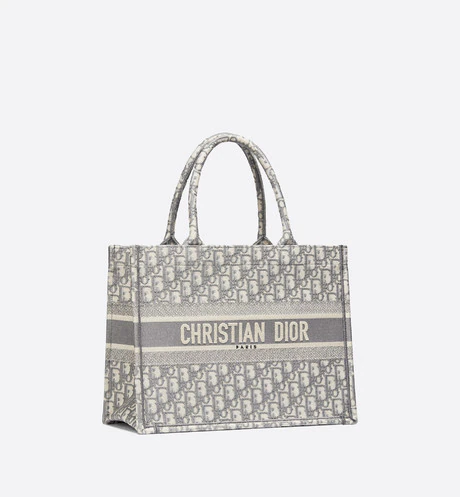 The Dior Book Tote is an original creation introduced by Dior's Creative Director, Maria Grazia Chiuri, and has become a staple of the Dior aesthetic. Designed to hold all the daily essentials, it is fully embroidered with the gray Dior Oblique motif and adorned with a 'CHRISTIAN DIOR' signature on the front. The small tote exemplifies the House's signature savoir-faire and may be carried by hand or worn over the shoulder.