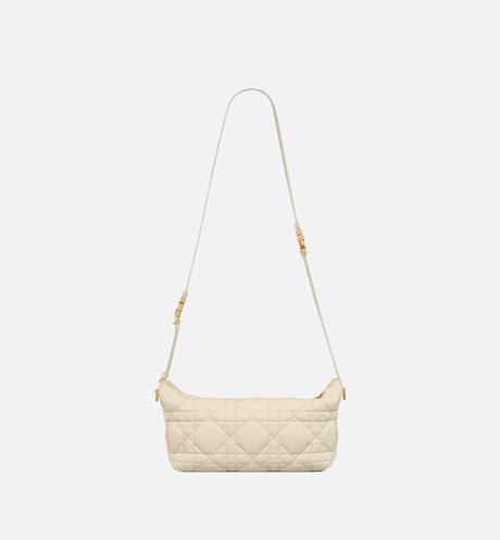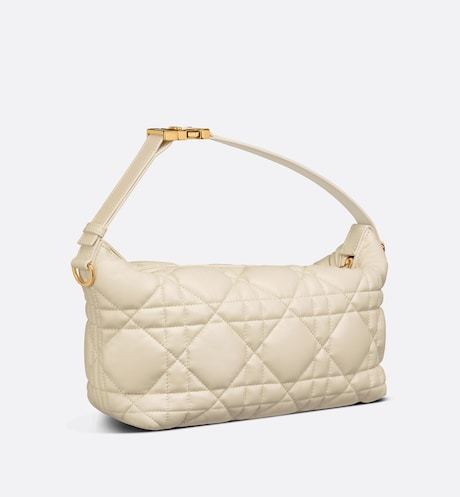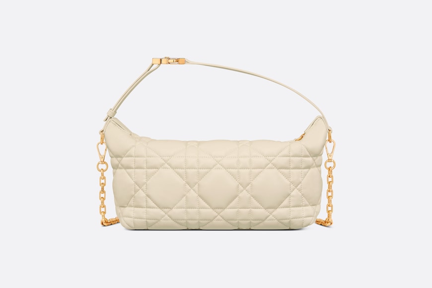 New this season, Maria Grazia Chiuri imagines the Nomad bag, a modern, hybrid design. Crafted in latte calfskin, it is characterized by the unique quilted effect of its Macrocannage stitching. The versatile accessory features a short handle with a military-inspired 'CD' buckle. The small bag's handle can be adjusted for use as a shoulder strap, while the detachable chain is completed by a leather insert, offering comfort and elegance for multiple wears.
