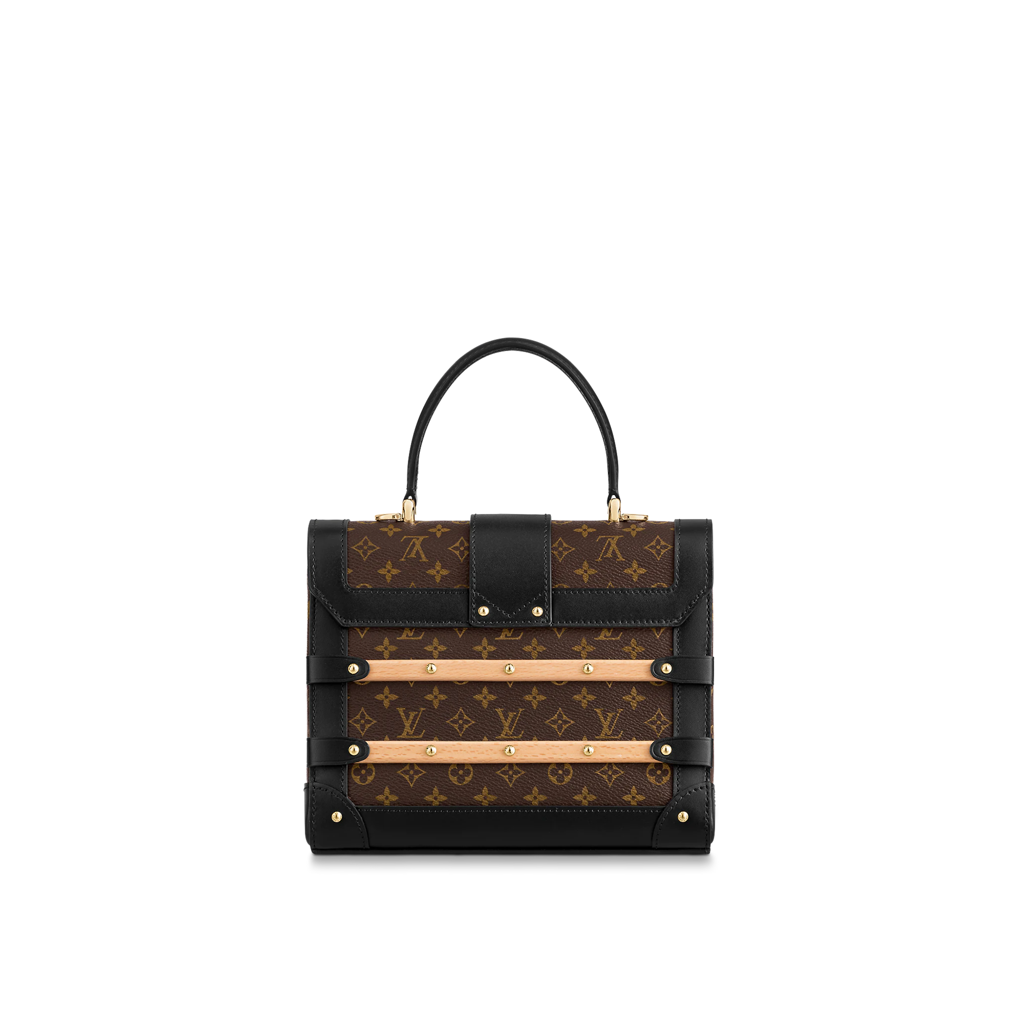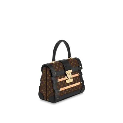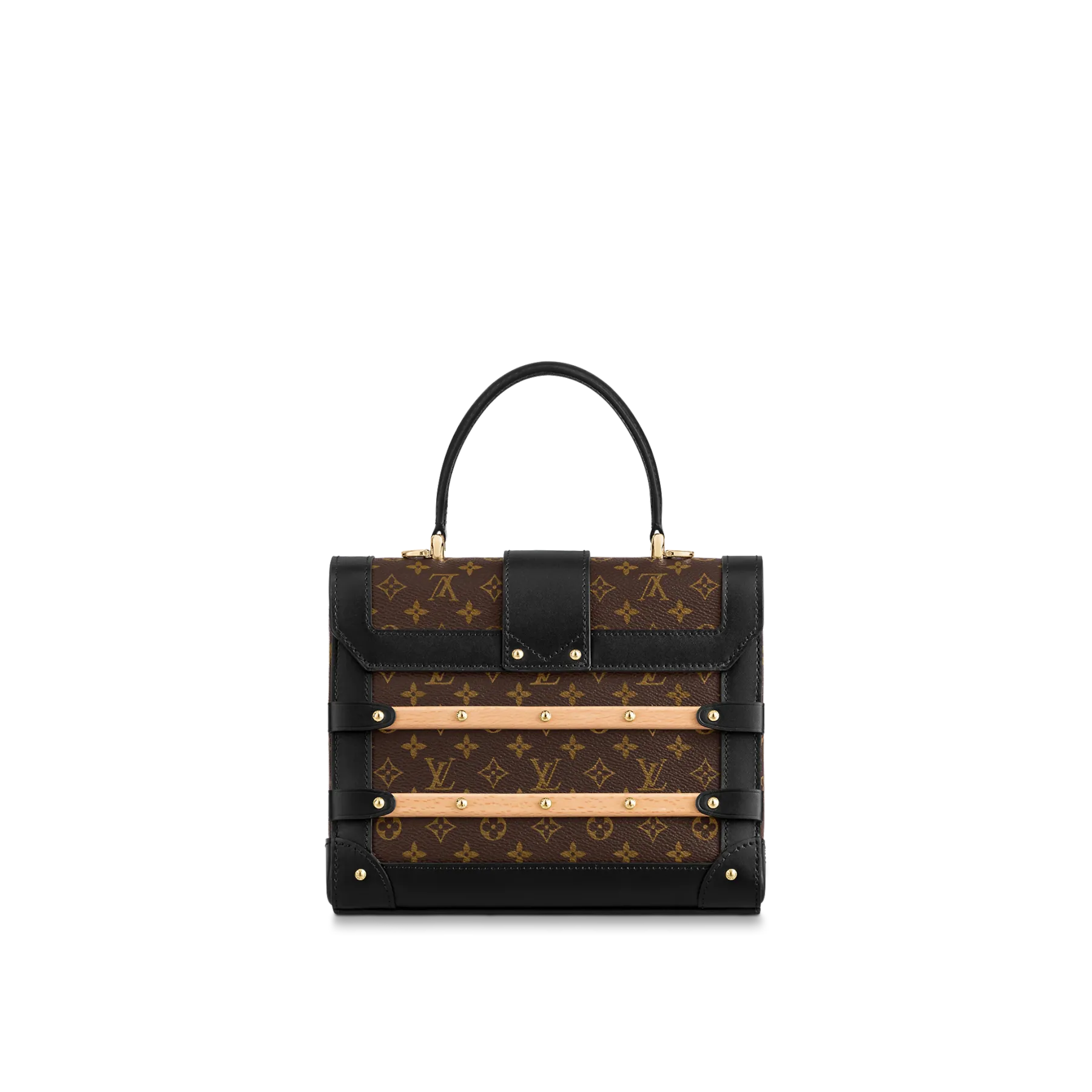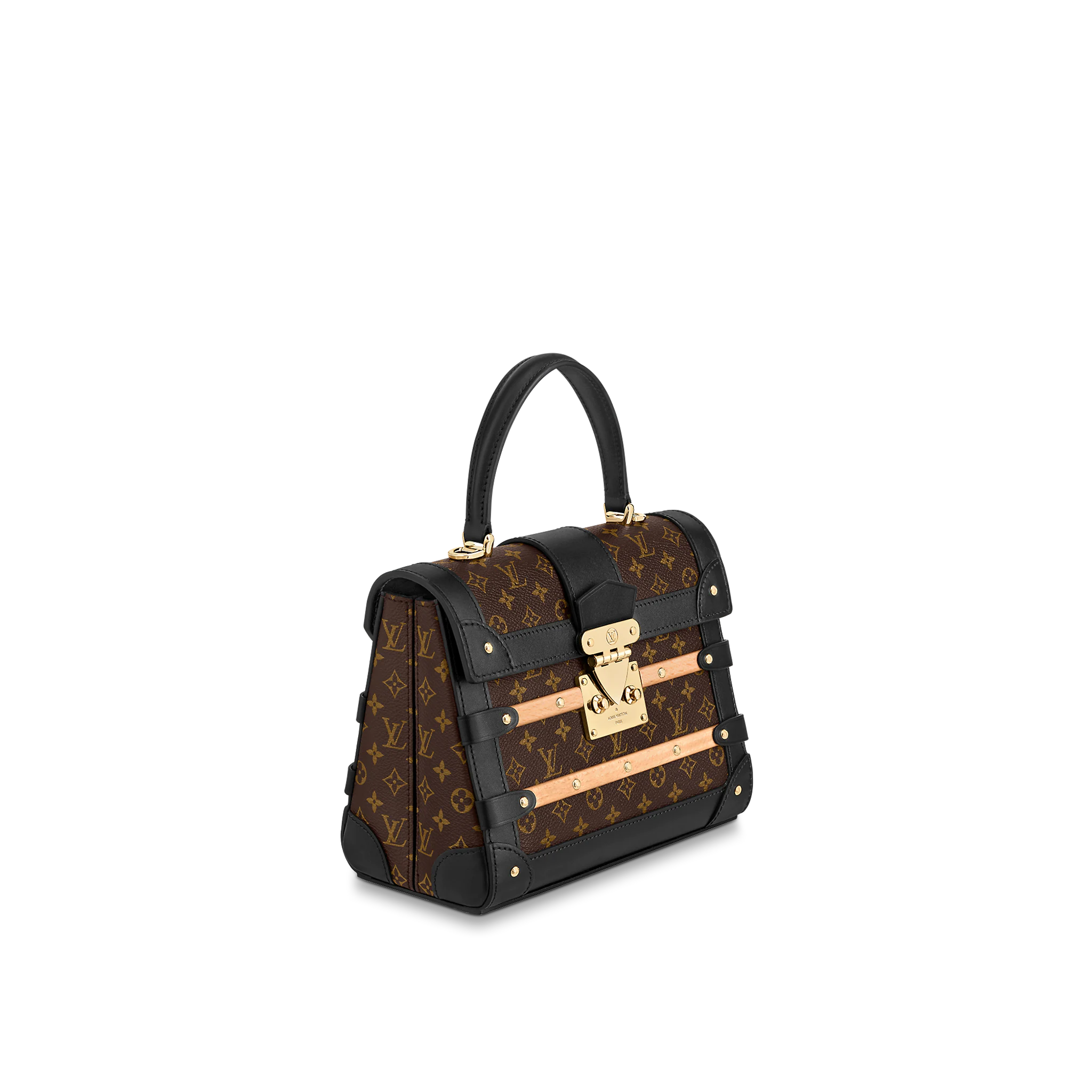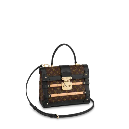 Nicolas Ghesquière looks back at Louis Vuitton's box-making history and creates Trianon small handbags. Monogram canvas shapes a semi-rigid design. S-lock hooks, leather and wooden trim continue the traditional hard box elements. The top handle and the detachable and adjustable leather shoulder strap realize the choice of shoulder and crossbody.