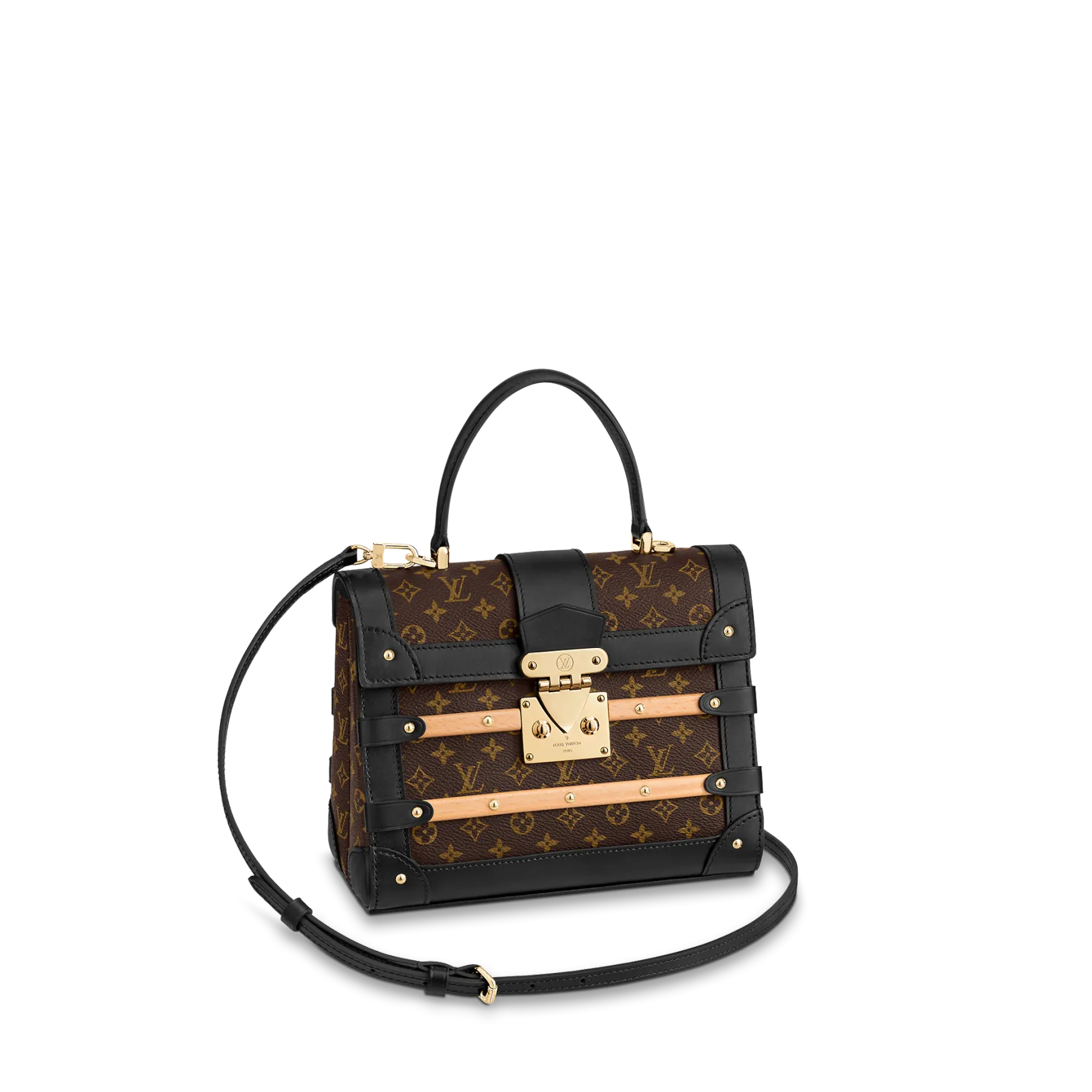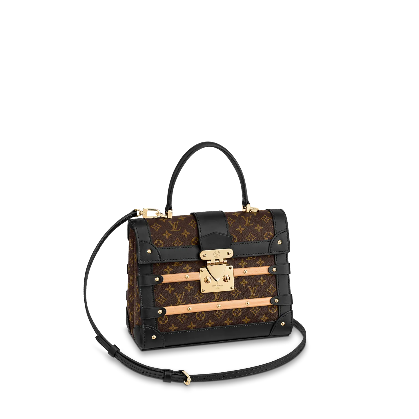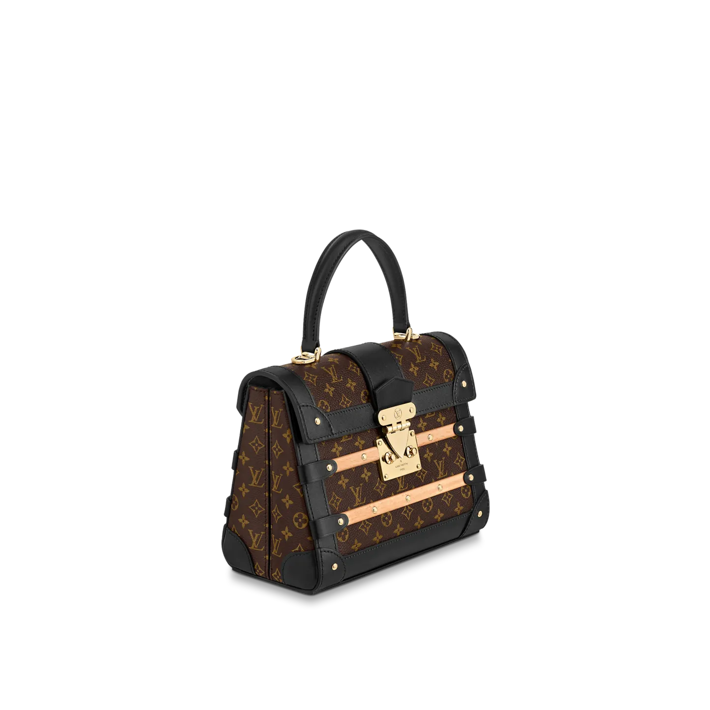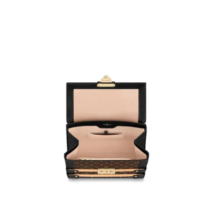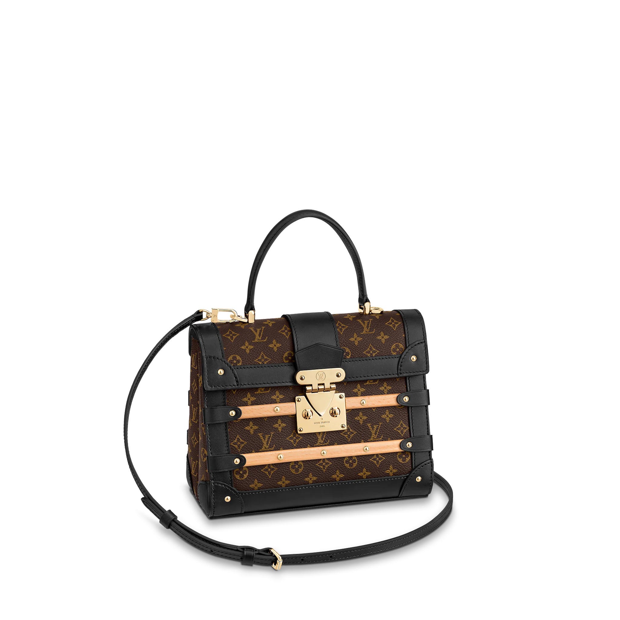 Nicolas Ghesquière looks back at Louis Vuitton's box-making history and creates Trianon small handbags. Monogram canvas shapes a semi-rigid design. S-lock hooks, leather and wooden trim continue the traditional hard box elements. The top handle and the detachable and adjustable leather shoulder strap realize the choice of shoulder and crossbody.