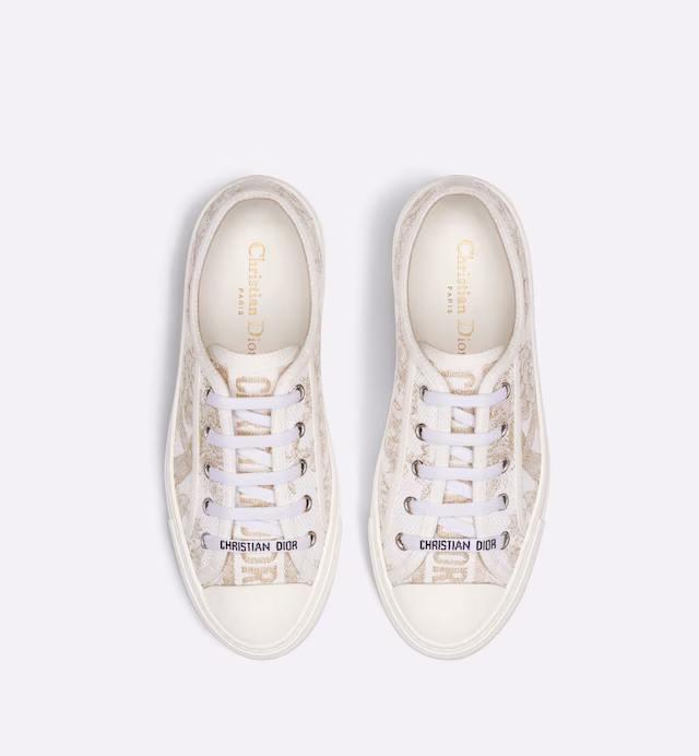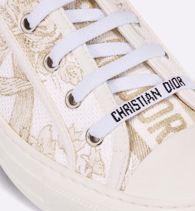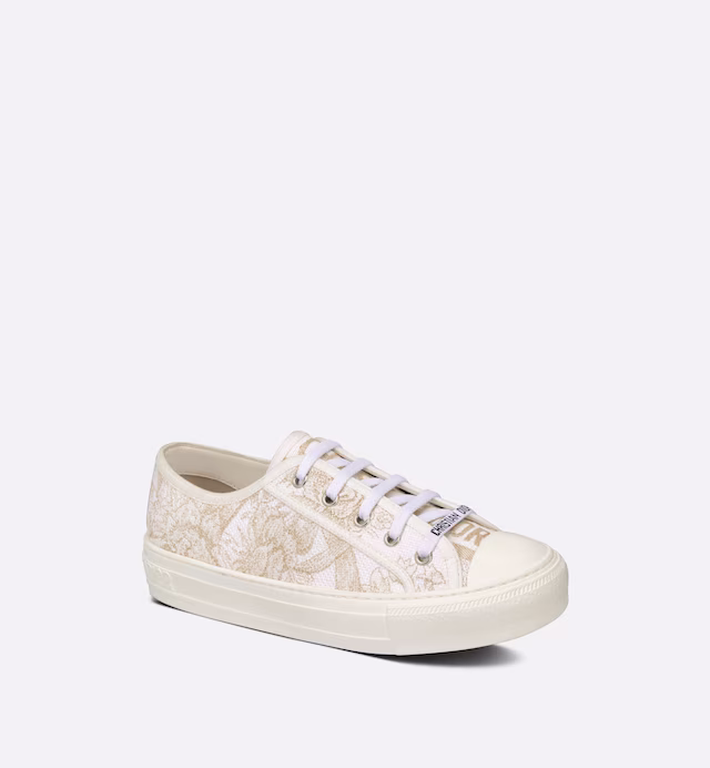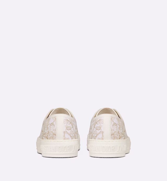 The Walk'n'Dior sneaker presents the Dior Jardin d'Hiver motif, a poetic and exotic representation of Mr. Dior's wall tapestries. Crafted in white embroidered cotton with gold-tone metallic thread, it has a relaxed style completed by signatures on the tongue, rubber sole and laces for a timeless look. The comfortable sneaker will lend a modern touch to any outfit and can be paired with other Dior Jardin d'Hiver creations from the collection.