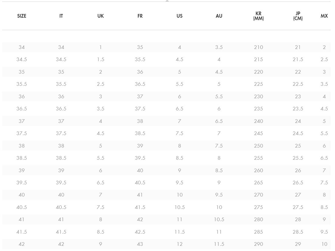 Please note that the dimensions in cms and mms refer to the length of your foot. Please take your measurements to find your Gucci size.