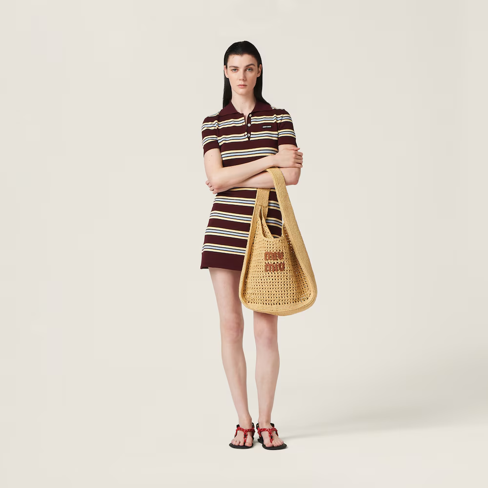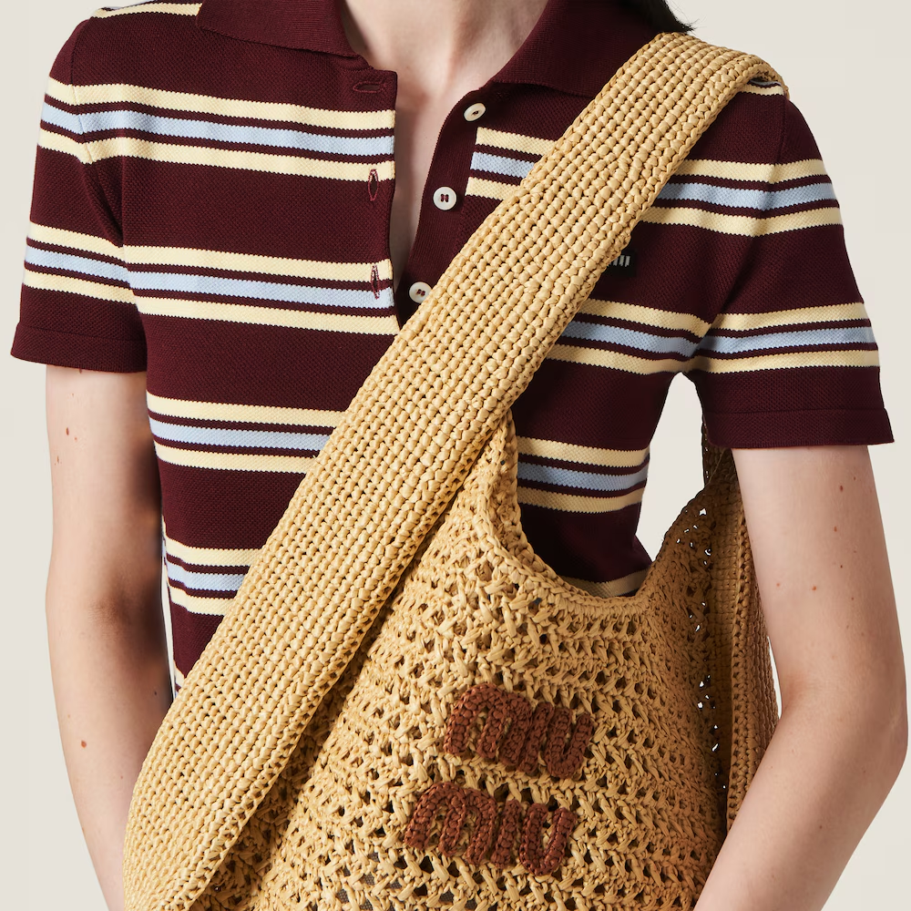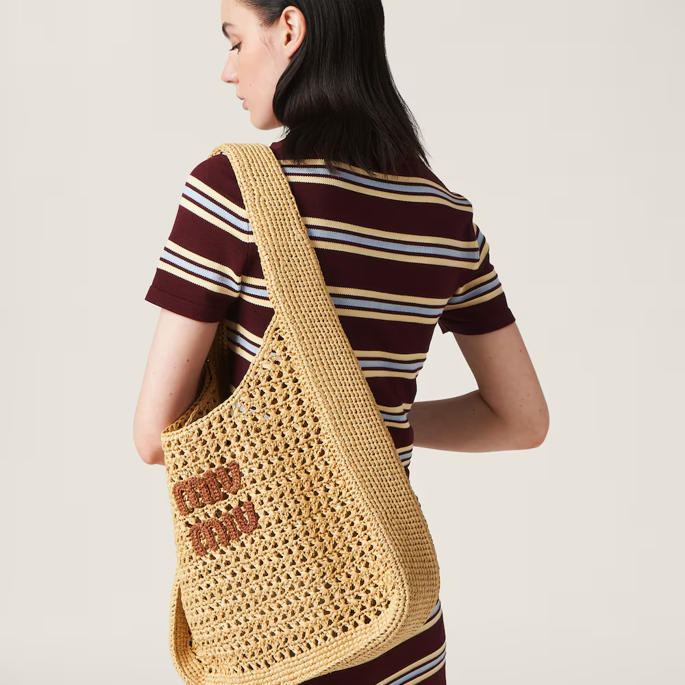 A sleek yet refined design characterizes this woven fabric hobo bag. The mesh effect gives the bag lightness, while the internal pouch adds a functional detail. The contrasting logo completes the style with an iconic note.