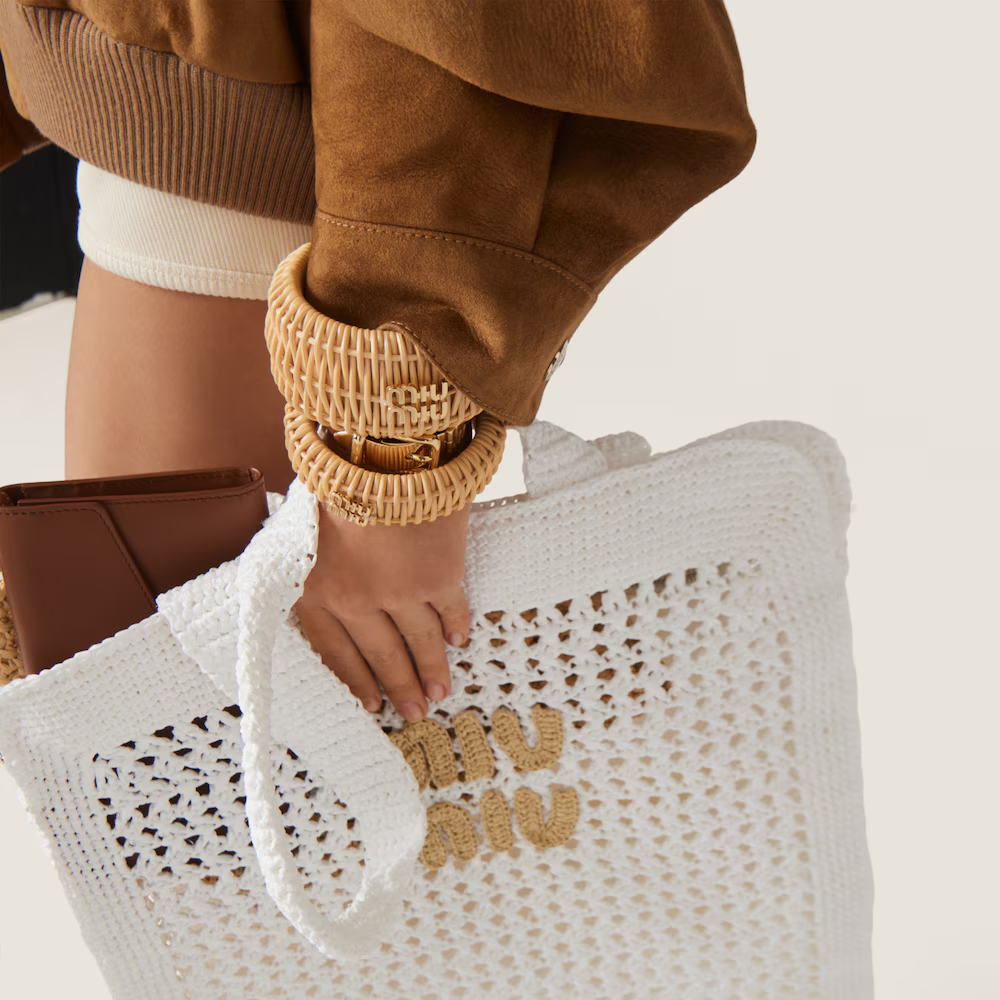 This tote that recalls the summer season has a soft, deconstructed silhouette. $ The lettering logo decorates the front of this accessory that reinterprets the concept of the beach bag in a new and contemporary way.